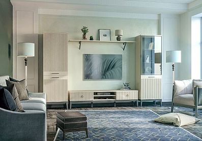 Мебель выполнена в цвете «Кашемир серый»;