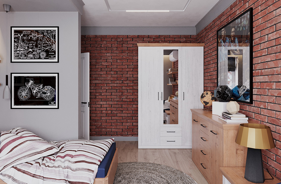 - Молодежная будет гармонировать как с классическими оттенками белого, серого, коричневого, так и с текстурами — деревом, бетоном и кирпичом;